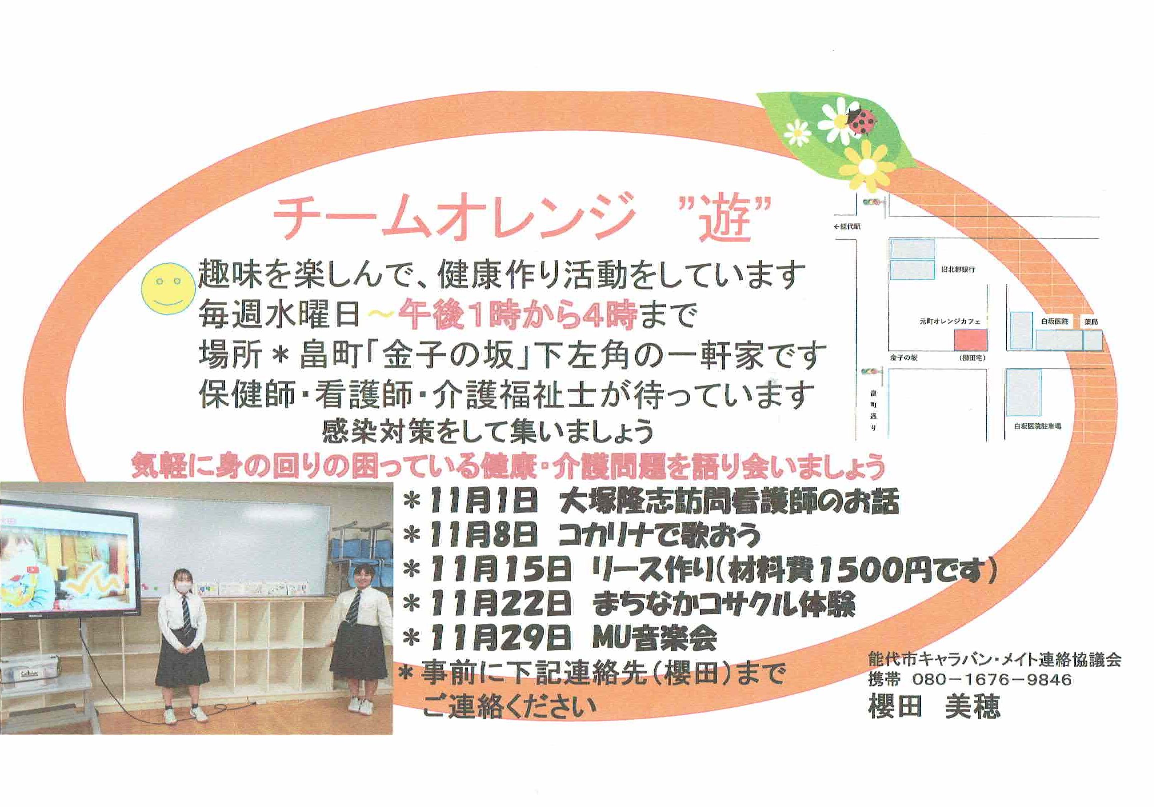 ★「チームオレンジ“遊”」オレンジの会 11月のスケジュール
