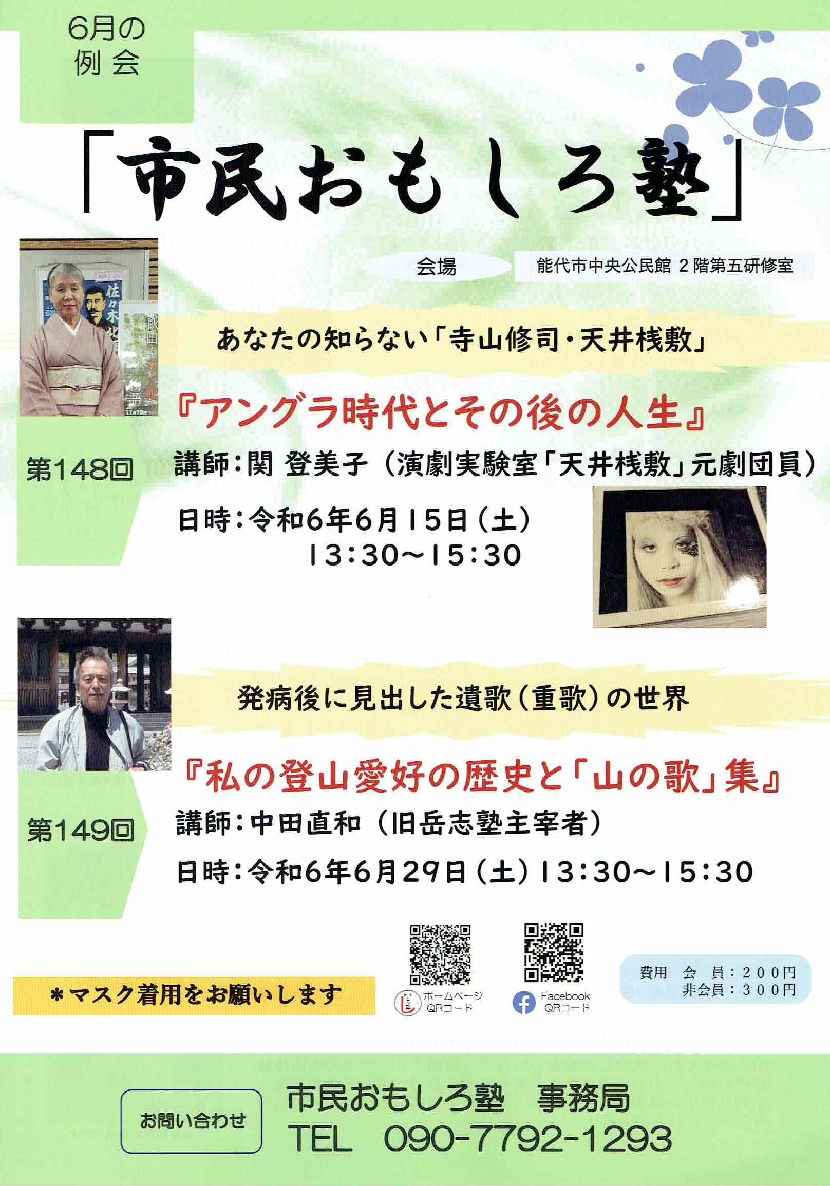 〈市民おもしろ塾〉6月市民おもしろ塾のお知らせ