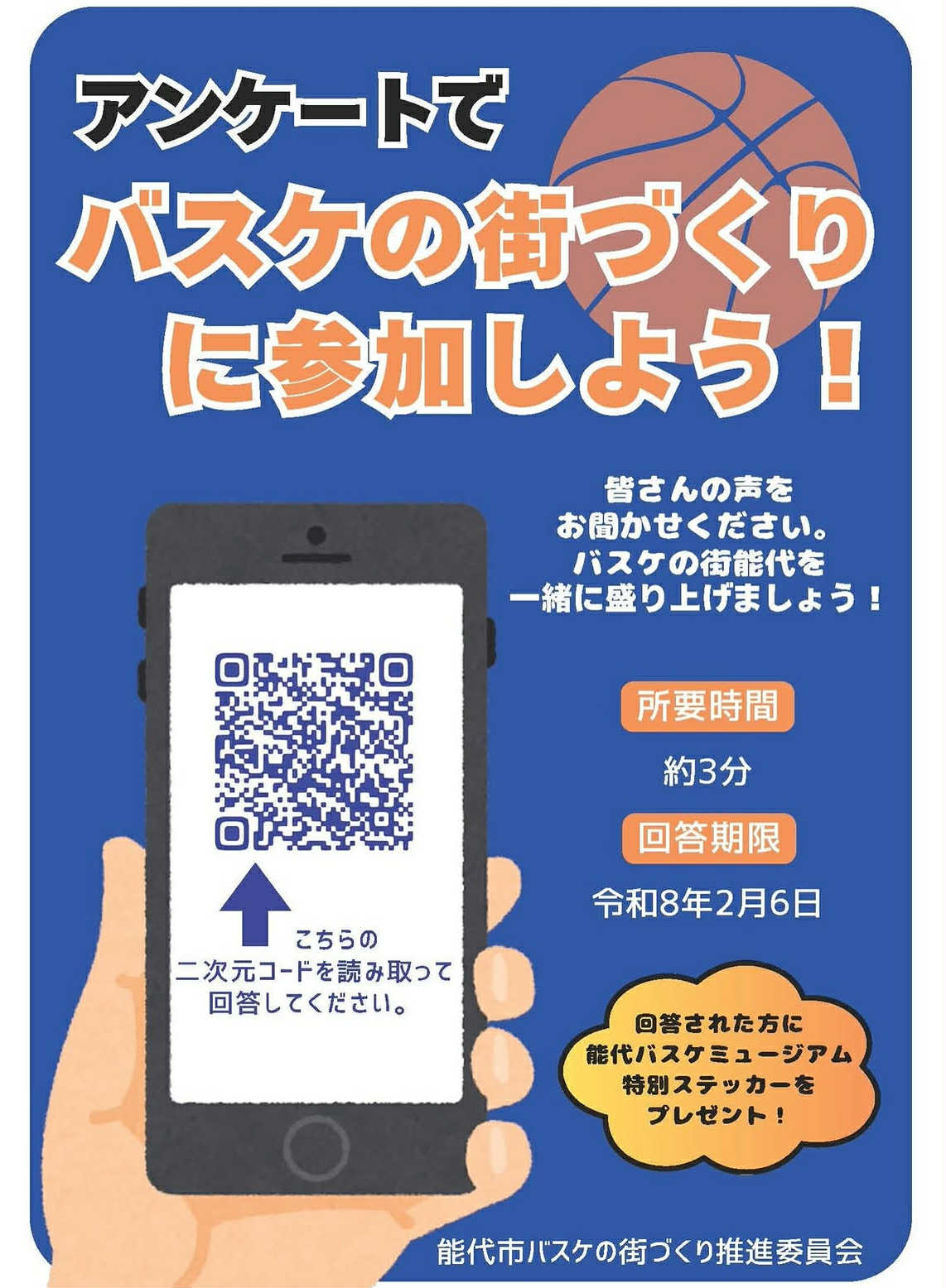 「バスケの街能代」を盛り上げていくため、能代市バスケの街づくり推進委員会がアンケートを行います。